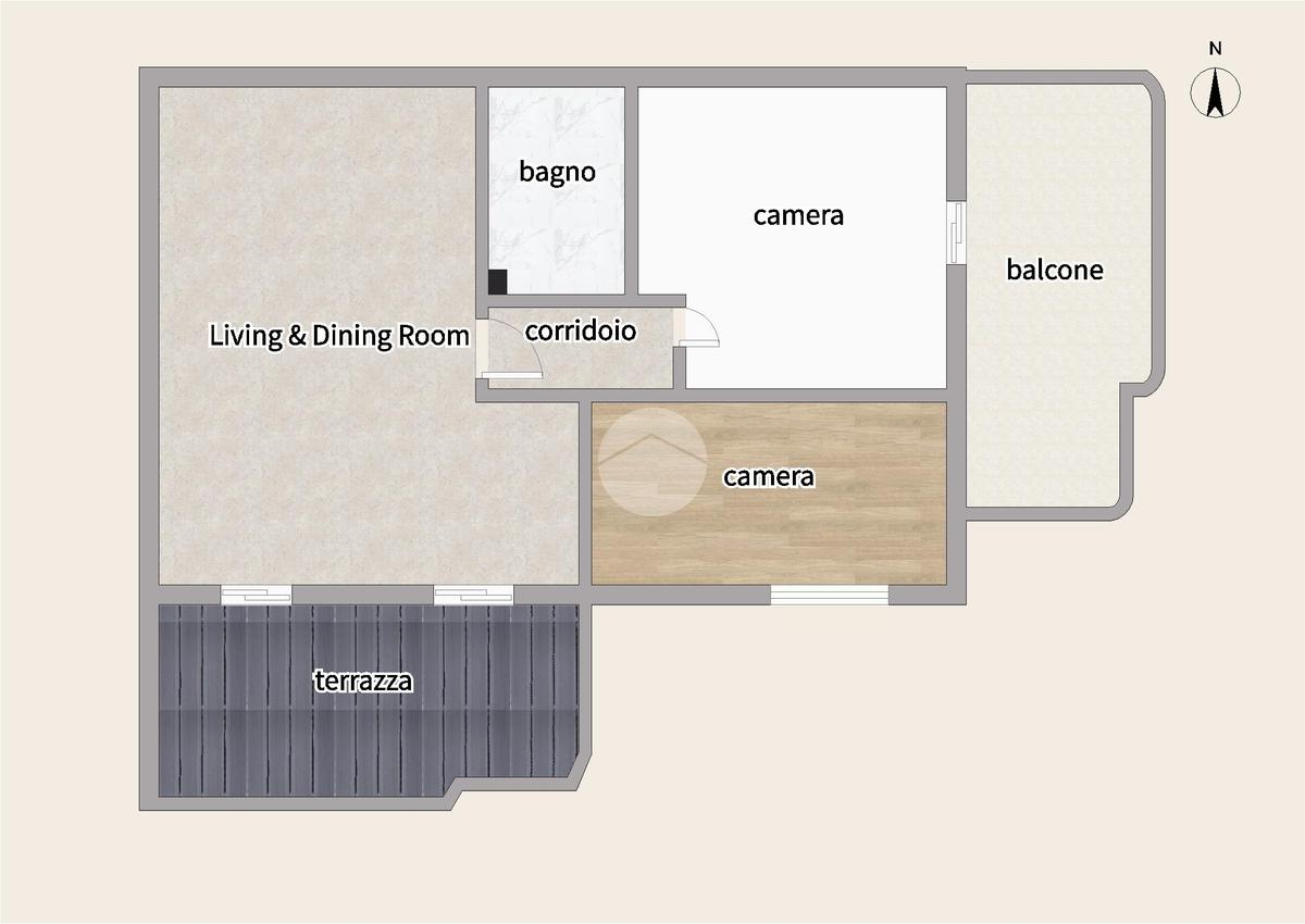 L’immobile fa parte di un condominio costruito nel 2010 al primo ed ultimo piano e si presenta in ottime condizioni, entrando ci accoglie una zona giorno luminosissima con angolo cottura, ben distribuita e di generose dimensioni, plus di questo ambiente è l’uscita sulla terrazza esposta ad ovest, ideale nelle giornate primaverili, dal disimpegno accediamo alla zona notte dove troviamo un comodo e ampio bagno finestrato, una cameretta singola con letto alla francese e un'altra camera matrimoniale con uscita anch’essa su un'altra terrazza abitabile.